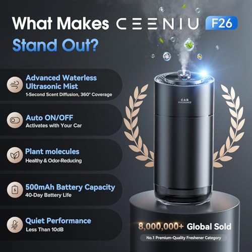 - Experience the difference with Ceeniu's commitment to quality. Each purchase comes with a 1-year CeeniuCare warranty, ensuring you have the support you need for peace of mind. Elevate your car experience with the F26 Car Aroma Diffuser today!