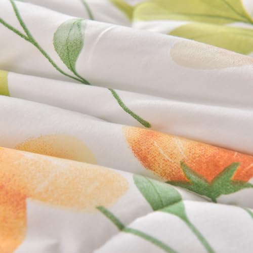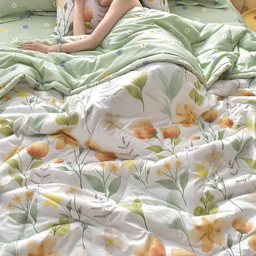 The unique reversible design offers two beautiful patterns: a vibrant green floral and a chic orange leaf, enabling you to effortlessly switch up your bedroom's look. Made from a blend of durable microfiber and soft cotton, it provides the ideal balance of warmth and breathability for all seasons.