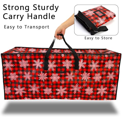This bag is not just functional; it adds a touch of festive charm with its delightful snowflake design and robust black and red plaid pattern. Designed to accommodate artificial trees up to 7.5 feet, it provides the perfect sanctuary for your tree, protecting it from dust and moisture.