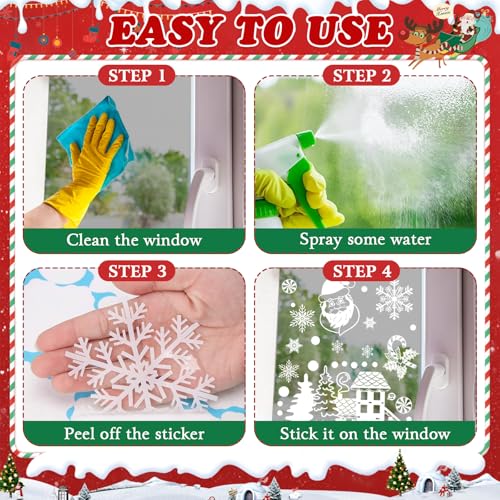 This set includes 10 sheets of delightful designs, featuring everything from jolly Santa Claus to whimsical snowflakes, ensuring that your home looks festive and inviting. The beauty of these stickers lies in their simplicity; they require no glue or adhesive, making them straightforward to apply and remove. Just dampen the surface, stick them on, and if you need to adjust them, they're repositionable without leaving any sticky residue behind.