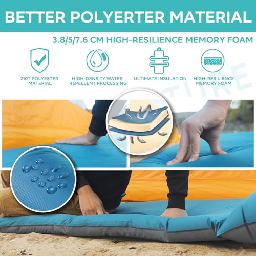 Imagine unrolling your mat, opening the valve, and watching it inflate effortlessly while you take in the stunning views around you. With its impressive 3.8 cm memory foam padding and adjustable pillow, comfort is just a quick adjustment away. Whether you're hiking, camping, or mountaineering, this mat provides the insulation and protection you need against the cold, uneven ground.