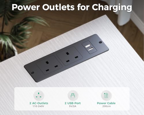 - Comfort is key, and with 71cm of legroom, you can work, study, or game for hours without feeling cramped. The built-in power outlet, featuring two AC sockets and two USB ports, makes charging your devices a breeze—no more scrambling for plugs while you’re in the zone!