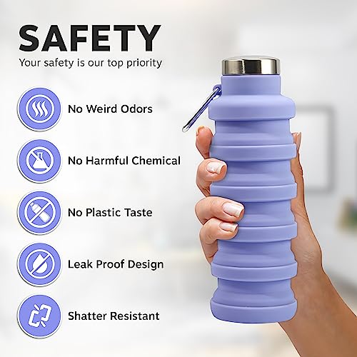 Collapsible Water Bottle Uk Brand Bpa Free Silicone Travel Essential Foldable Gym Bottle Leakproof Hiking Camping Accessories Cycling Bottle Yoga Bottle Kids 500ml