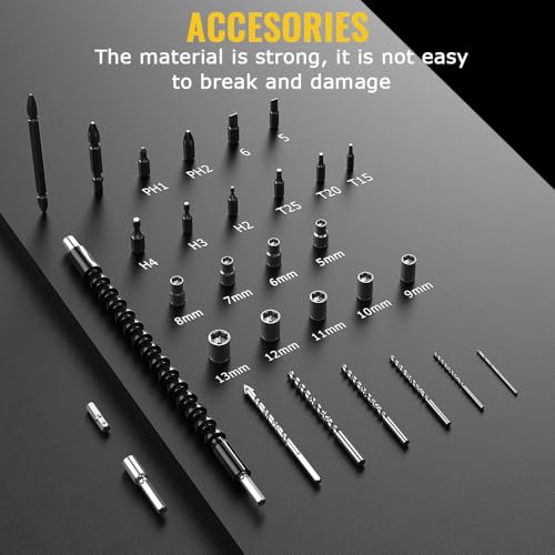 The dual-speed settings allow you to adapt to various materials with ease—use the lower speed for tougher surfaces and the higher speed for softer ones. Plus, with the included **30 drill bits**, you’ll have everything you need to get started right away.