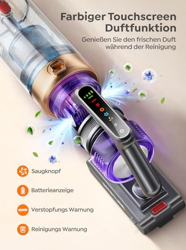 The wall-mounted charging dock is another thoughtful feature, designed to keep your vacuum and accessories neatly organised and easily accessible. You can effortlessly switch between different cleaning modes using the intuitive LED touchscreen, ensuring optimal performance on various surfaces.