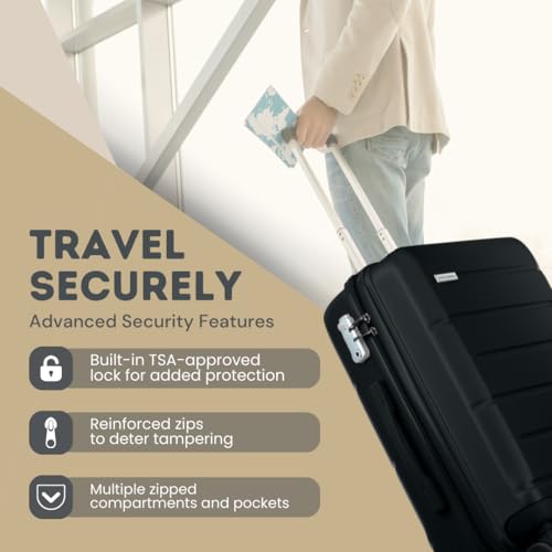 The lightweight design ensures that you can carry all your essentials without the hassle of heavy bags. Each suitcase is equipped with four smooth-rolling spinner wheels, making navigation through airports and train stations a breeze. Plus, with its sturdy water-resistant hard shell, you can travel confidently, knowing your belongings are protected from the elements.
