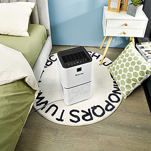 COSTWAY 12L/Day Dehumidifier with Digital Control Panel, Continuous Drainage, Laundry Drying, 3 Modes, Timer & Child Lock, Portable Dehumidifiers for Home Damp (12H Timer, 26x22x47cm)