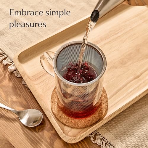 Imagine waking up to a steaming cup of your favourite Earl Grey, or unwinding with a soothing chamomile in the evening. The fine-mesh infuser allows your tea leaves to unfurl fully, releasing rich flavours and aromas that transport you to your favourite tea garden. Plus, the natural cork coaster adds a touch of sophistication, ensuring you can enjoy your tea without worrying about spills.