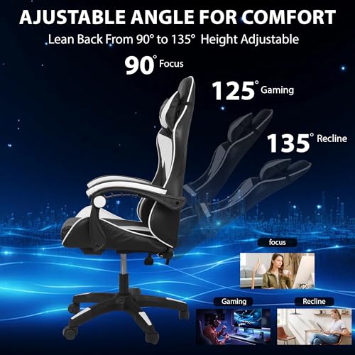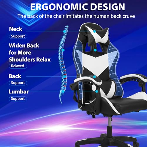 COZYBRITE Gaming Chair Office Desk Computer Chairs Swivel with Massage Headrest Back Support Reclining Ergonomic Design Faux Leather (Black+White)