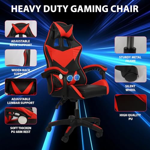 COZYBRITE Gaming Chair Office Desk Computer Chairs Swivel with Massage Headrest Back Support Reclining Ergonomic Design Faux Leather (Black+Red)