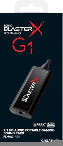 - Elevate your gaming experience with the Creative Sound BlasterX G1, a cutting-edge USB DAC sound card that delivers true 7.1 HD surround sound. Designed for gamers who demand precision, this portable device supports 7.1 channel audio input signals, allowing for incredibly realistic audio cues and immersive soundscapes that make you feel like you're truly in the game. With the built-in headphone amplifier, you can power everything from gaming headsets to studio-grade headphones, ensuring that every whisper and explosion is delivered with crystal clarity.