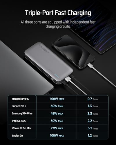 With a powerful 210W output across its multiple ports, you can charge your laptop and smartphone simultaneously without any hassle. Imagine being at an airport, ready for a long flight, and knowing you can keep your MacBook and iPhone fully charged without searching for a power outlet.
