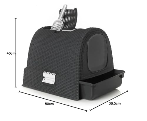 - Discover the ultimate solution for your feline friend's needs with the Curver Petlife Cat Litter Box, designed with both style and functionality in mind. This modern litter box features a chic rattan weave look in an elegant anthracite shade that seamlessly fits into any home décor.