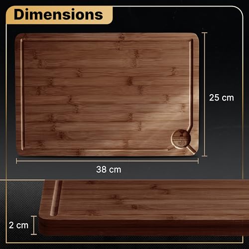What sets this chopping board apart is its eco-conscious construction. Made from carbonised bamboo, it not only boasts incredible strength and resistance to warping but also presents a beautiful finish that adds a touch of rustic charm to any kitchen. Plus, with its deep juice grooves, you can carve meats or slice loaves of bread without worrying about mess—keeping your kitchen tidy and your food preparation seamless.