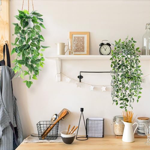 When it comes to enhancing your home decor, the Der Rose 2 Pack of Fake Plants Hanging Faux Potted Ivy Vine Artificial Plants offers the perfect balance of style and practicality. Unlike traditional plants, these faux beauties require no watering, trimming, or special care, making them ideal for busy lifestyles or for those who may struggle to maintain live plants.