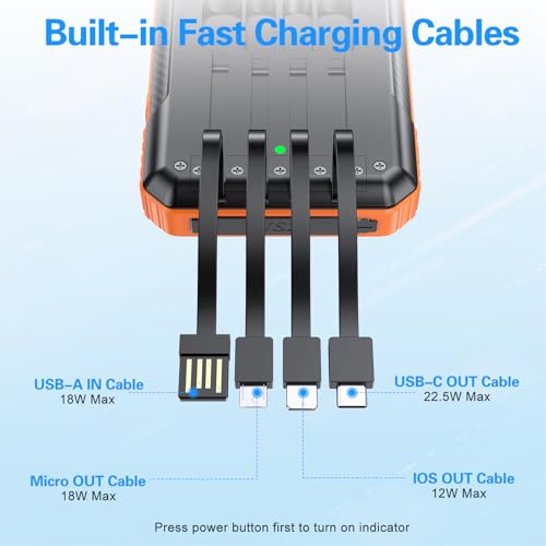 One of the standout features of this power bank is its built-in charging cables, which eliminate the need to carry extra cords. This means less clutter in your bag and more convenience when you’re on the go. Imagine being able to charge your devices without rummaging for cables—it's a hassle-free experience that enhances your daily life.