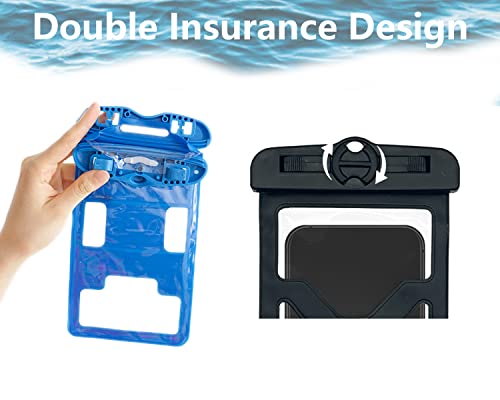 DFsucces Waterproof Phone Case,Universal Water-Proof Pouch,Cellphone Dry Bag with Nylon Arm Belt and Lanyard,Compatible with iPhone 13 12 11 Pro Max XS XR X 8 Samsung S20 S10, etc.(2 Pack in Black)