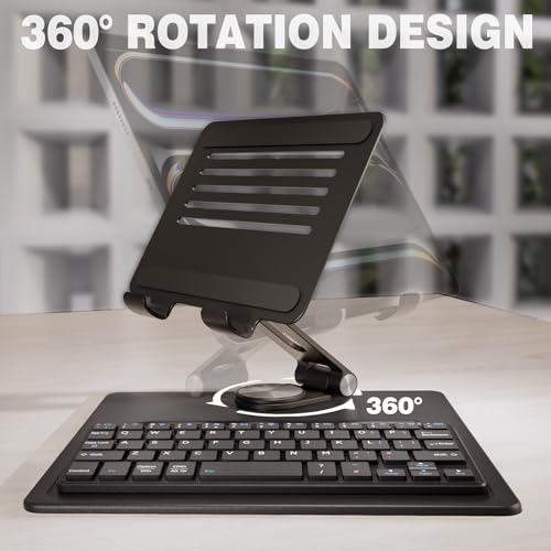 Doohoeek Wireless Keyboard for Tablet with 360° Rotation Adjustable Stand, Dual Bluetooth Keyboard Compatibel with iPad OS, Android Tablets and Windows, Black