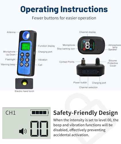With four training modes, including voice commands and automatic anti-barking features, this collar allows you to tailor your training approach to suit your dog’s individual needs. The remote control operates over a range of 1500 feet, meaning you can effectively manage your dog’s behaviour whether you’re in your backyard or at the park.