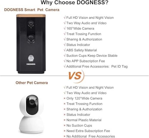 No monthly fees, easy setup, and exceptional features make the DOGNESS Wi-Fi Pet Camera a must-have for any pet lover. Don’t miss out on the chance to enhance your pet’s life and keep them entertained. Make your purchase today and enjoy peace of mind knowing your pets are happy and safe!