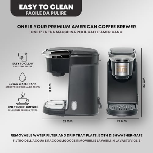 Dolché ONE, Coffee Maker for American Coffee Pods - Compatible with Keurig K-cups 2.0 Capsules - Black & UK Plug
