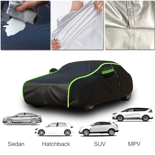 This cover is designed for outdoor use, providing comprehensive protection from harmful UV rays, heavy rain, and even dust that can mar your car’s finish. Its custom fit means it won’t flap in the wind, and the added fluorescent strips enhance visibility at night, making it safer to park outdoors.