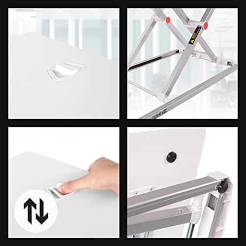 - Introducing the Duronic DM05D11/WE Adjustable Sit-Stand Desk Workstation – the latest innovation in ergonomic workspace solutions! This newly redesigned model is your key to elevating your home or office productivity. Crafted from high-quality materials, the DM05D11/WE features an improved structure that allows it to fold almost flat. This compact design not only saves space but also makes it incredibly easy to relocate or store away when not in use.