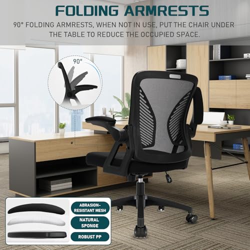 Durrafy Office Chair Ergonomic Desk Chair Mesh Chair With 90° Flip-up Armrest Swivel Computer Chair With Lumbar Support, Adjustable Height, Back Support 360° Rotation Gaming Chair For Home Office