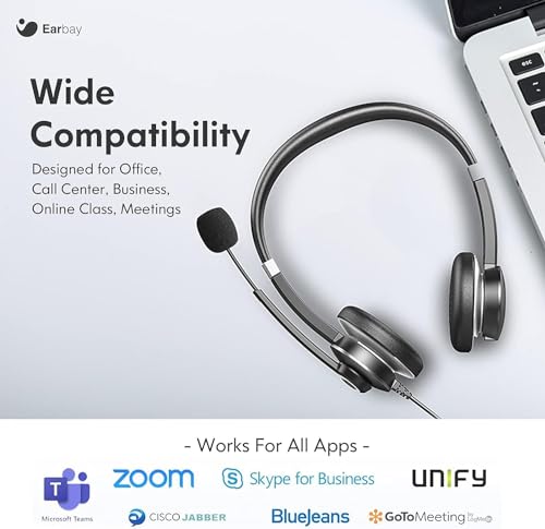 Earbay USB Headset With Microphone For Laptop, PC Headphones With Mic Noise Cancelling, Computer Headsets With In-Line Volume Control & Mute, Compatible with Ms teams, Zoom, Webex, Office, Home
