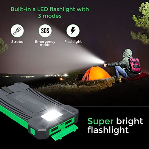 EFFICEL Solar Power Bank 10000mAh, Portable Solar Charger 2A, USB C Fast Charging External Battery Pack with LED Flashlight for Camping Outdoor Activities