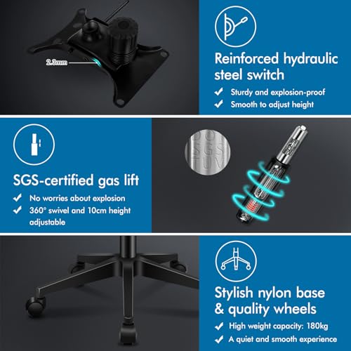 - Constructed with premium polyester mesh and supported by an SGS-certified gas lift and a sturdy nylon star base, this chair can accommodate users weighing up to 180kg. Its 360° swivel casters allow for effortless mobility, making it perfect for multitasking in home offices, busy workplaces, or study rooms.