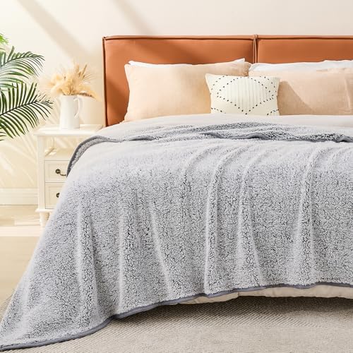 EMME Sherpa Blanket Throw Size Ultra Soft Warm Fuzzy Fleece Throw Blanket Microfiber Cozy Blanket for Couch Sofa Lightweight Fuzzy Thick Reversible Couch Blanket(Grey, 130x150cm)