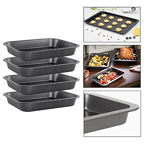 - Discover the ultimate baking companion with the Evadow 4-Pack Heavy-Duty Non-Stick Oven Baking Tray Set. This versatile collection includes two large trays (34 x 24 x 6 cm), one medium tray (32 x 22 x 5.5 cm), and one small tray (30 x 20 x 5 cm) to cater to all your culinary needs. Made from premium non-stick carbon steel, these trays are 100% PFOA-free, ensuring safe and healthy cooking for your family. With two layers of durable non-stick protection, you can say goodbye to the hassle of stuck food and enjoy effortless clean-up.