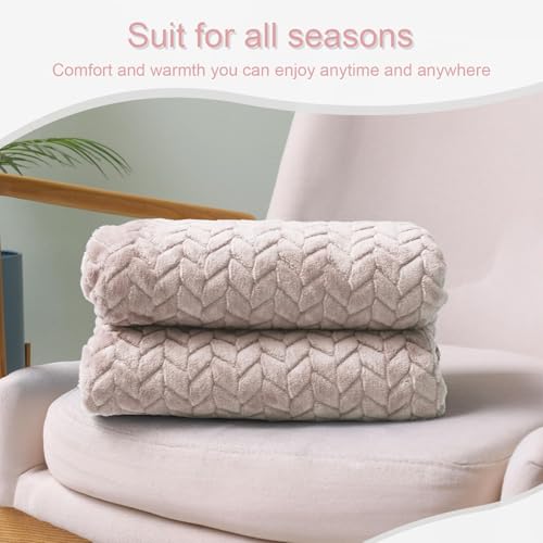 Exclusivo Mezcla Fleece Throw Blanket for Couch and Bed, 127x178 CM Soft Cozy Jacquard Flannel Blankets, Lightweight Fuzzy Plush Warm Throws for All Seasons, Camel