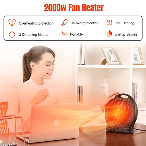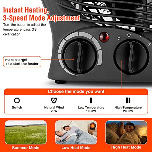 Fan Heaters for Home Low Energy Silent, 2000W 2-in-1 Portable Space Heaters with 3 Heat Settings, Instant Heat Electric Heaters with Energy Efficient for Living Room, Bedroom, Office, Mia&Coco