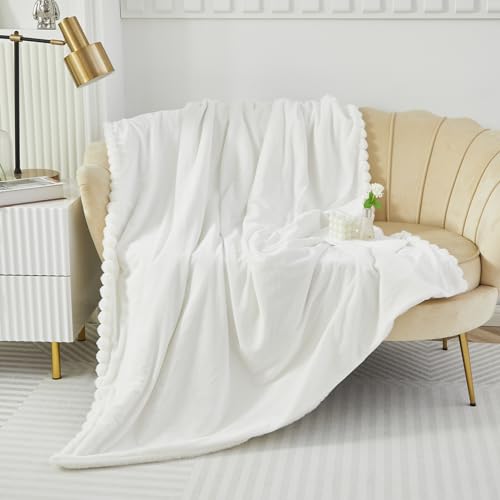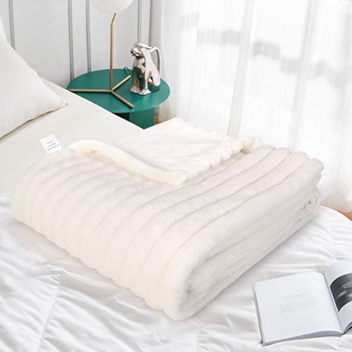 Faux Fur Plush Throw Blanket, Double Sided Fluffy Fuzzy Blanket, Luxury Cozy Plush 360GSM Blanket for Couch, Sofa, Bed, Living Room (White, 100x160cm)