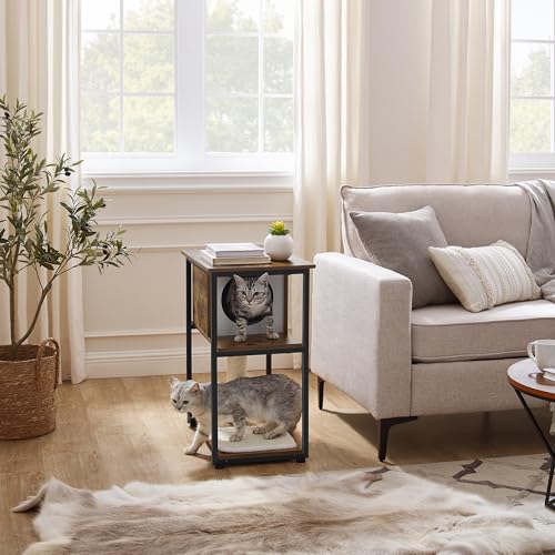 Looking to elevate your home décor while providing a playful retreat for your feline friend? The Feandrea Cat Tree is the answer! This stylish piece not only serves as a trendy end table but also offers your cat a paradise of fun and relaxation. Crafted with a charming rustic brown finish and sturdy black steel accents, it seamlessly blends into any industrial or modern home.