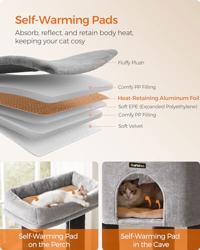 With its self-warming pads, your cats can curl up and soak in their own body heat, making it an inviting spot during colder months. The nine robust scratching posts give them the freedom to scratch to their heart's content, preserving your furniture from those pesky claw marks.