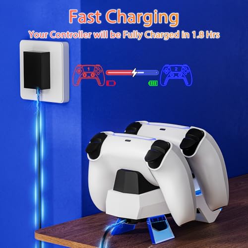- Unlock the full potential of your gaming experience with the Fenolical PS5 Dual Controller Charger Station, designed for optimal speed and convenience. With its impressive 1.8-hour fast charging capability, this charging dock utilises copper connectors to ensure your PS5 controllers are powered up swiftly and safely. No more waiting around—get back to your games faster than ever!