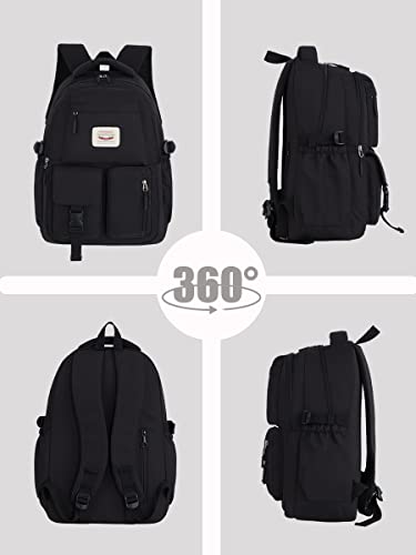 FIORETTO Lightweight School Backpack Womens, Cute School Bag for Teenager Girls, 14 Inch Laptop Rucksack Casual Daypack Backpack for Travel College Work Black