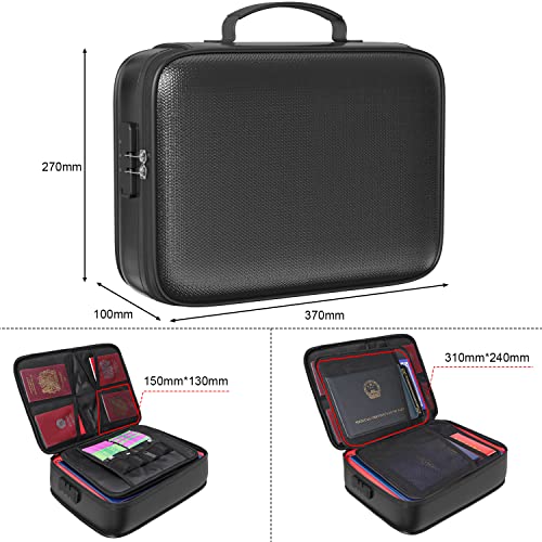 Fireproof Document Bag with Code Lock, Large Lockable Document Organizer Box Fireproof Water Resistant, Multi-Layer File Storage bag for Home Office Important Documents, Certificates and Valuables