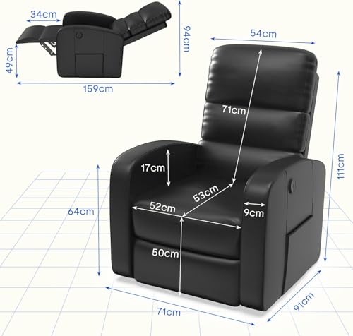 The thoughtful design includes high-quality cotton filling for optimal back support and a USB charging port for your devices. Whether you’re reading a book, watching TV, or simply relaxing, this recliner meets all your needs. Plus, its robust carbon steel frame guarantees durability and stability, ensuring that you can enjoy your chair for years to come.