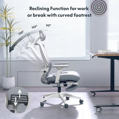 FLEXISPOT Foldex Ergonomic Office Chair with Foldable Backrest, Folding Desk Chair for Small Spaces with Lumbar Support, Flip-up Armrests, 3D Headrest and Footrest for Home Office- Grey
