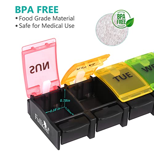 Imagine you’re preparing for a weekend away. Instead of lugging around multiple bottles of vitamins and supplements, simply fill the Fullicon Pill Box with your week's worth of health essentials. Each of the seven compartments is designed to hold a generous amount of capsules, ensuring you have everything you need while you're away from home.