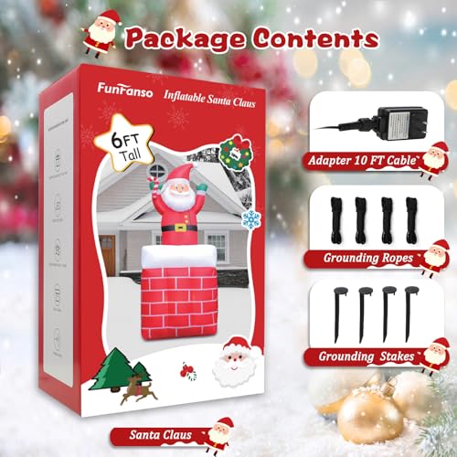 - Transform your festive celebrations with the FunFanso 6FT Christmas Inflatable Santa Claus in the Chimney! This enchanting outdoor decoration brings the magic of Christmas to life, showcasing Santa Claus in a delightful upward and downward motion as he playfully travels through the chimney. Unlike static decorations, this inflatable creates a dynamic visual spectacle that captures the imagination of children and adults alike, making it the perfect centrepiece for family gatherings, holiday parties, and community events.