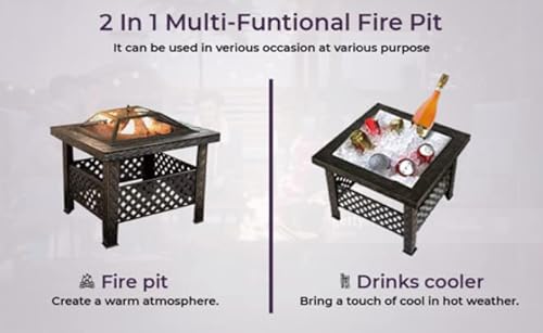 Garden Mile Outdoor Fire Pit for Garden with bronze effect- Large Square Heater Brazier, Fire Pit Table Top Garden Log Burner with Fire Poker for Camping, Patio