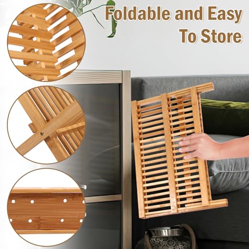 Not only is it crafted from durable, natural bamboo wood, making it a sustainable choice, but its foldable feature allows for easy storage when you need to clear up space. The added cutlery barrel is a practical bonus that ensures your utensils are always within reach and dry in no time.