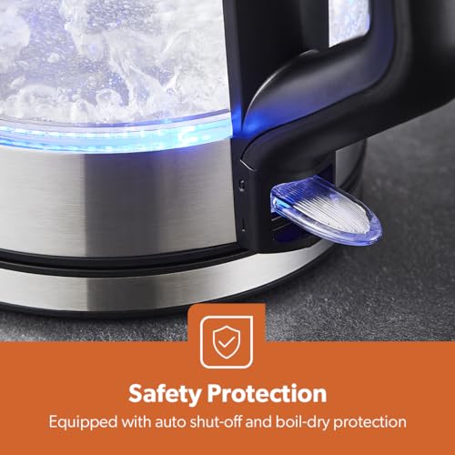 Safety is also a key feature, with an automatic shut-off mechanism that activates once your water reaches the boiling point, preventing any risk of overheating. The boil-dry protection ensures that you can use the kettle safely, even if you forget to fill it up.