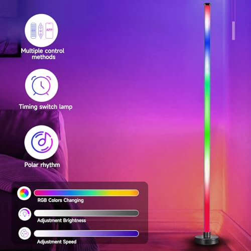 Led Floor Lamp, Smart RGB Corner Floor Lamp, Corner LED Lamp, Music Sync, DIY Mode, Timer, Remote Control, Dimmable Modern 16 Million Color Changing Standing Light for Living Room, Bedroom (1 Pack)