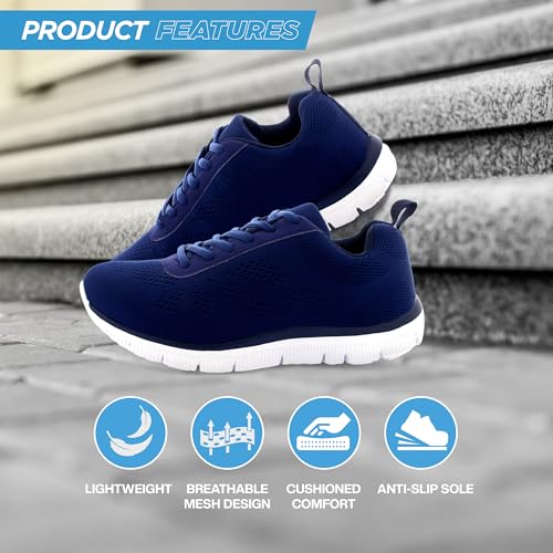 Available in a chic navy colour, they seamlessly blend into any active wardrobe, making them a versatile choice for workouts or casual outings. Don't just take our word for it – experience the comfort and style of the Get Fit Women's Mesh Running Trainers for yourself and step up your fitness game today!
